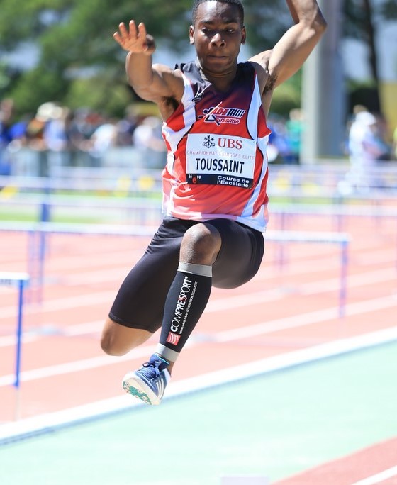 Quelques minutes après c'était le tour de notre petit jeune de rentrer dans l'arène. Christian Toussaint, l'un des plus jeunes (à vérifier mais il pourrait bien être le plus jeune) athlète du concours s'alignait en saut en longueur. Ayant obtenu les minimas cette saison il était surtout présent